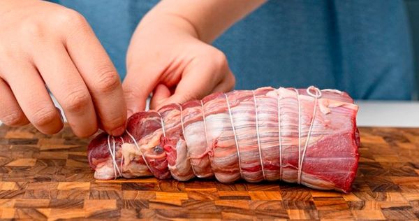 • Dùng dây buộc thực phẩm buộc chặt bắp bò để khi luộc thịt tròn đẹp, dễ thái